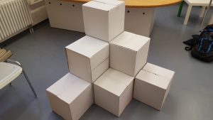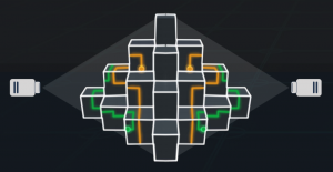 Block is an extension of the oldschool Arcade Game „Tron“. The game is played in the whole room around a small pyramid sculpture that has to be centered.
